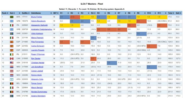 Στην Κατηγορία Ilca 7 Master ο αθλητής μας Αριστοτέλης Χατζησταματίου  κατέλαβε την 4η θέση ανάμεσα σε 38 αθλητές από 15 διαφορετικές χώρες, μετά από 11 απαιτητικές κούρσες.